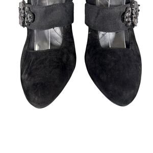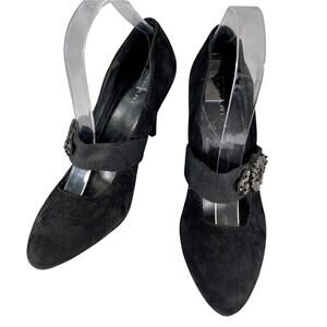 NWOT! TAHARI! BLACK GENUINE SUEDE LEATHER W/PATENT HEEL, BEADED DETAIL HEELS! 8M