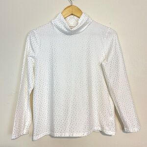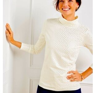 Keywords: Talbots gold dot turtleneck, holiday top, petite large, winter white shirt, cotton blend long sleeve, festive layering top, classic style