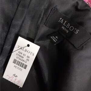 From TALBOTS is this awesome nubby PLAID skirt suit in a blend of red, orange, brown, black & cream! Beautiful seasonal colors! A fine wool blend, the jacket, blazer, features a four button front and flap pockets! It is fully lined in black poly satin, and the jacket is a longer length! The skirt, also fully lined, has a side zipper and is a straight, pencil style! The skirt still has a tag on it, also! A truly gorgeous suit set! Size 4P, ***NEW Without Tags, and Guaranteed Superb by Lily @HauteClub!*