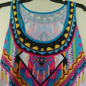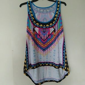 NWOT TANK CAMI TUNIC COVER UP AZTEC PRINT SZ 1X. TAG 5XL. FITS 1XL/2XL. HI LO STYLE. BRAND NEW. GORGEOUS.