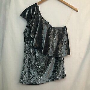NWOT TART Ruffled One Off Shoulder Velvet Top Grey Velour Ruffle Sleeveless SM