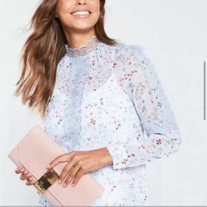 Never worn. Brand new. Ted Baker Javiera Blouse In Blue Floral With Lace Trim And Button Cuff Sleeves. Ted Size 4 / US 10