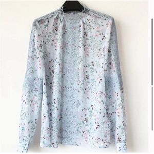 Never worn. Brand new. Ted Baker Javiera Blouse In Blue Floral With Lace Trim And Button Cuff Sleeves. Ted Size 4 / US 10