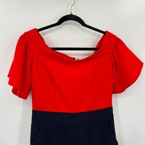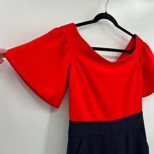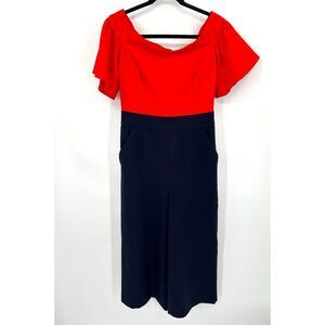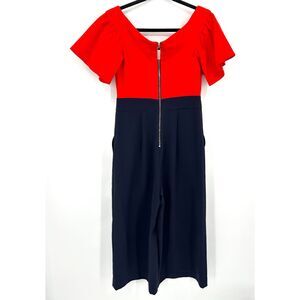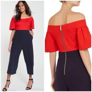 NWOT TED BAKER Juliaaa Red Navy Blue Off The Shoulder Wide Leg Crop Jumpsuit 6
