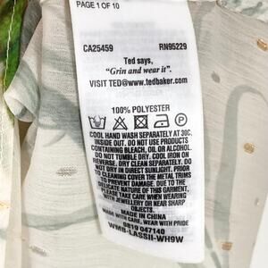 NWOT TED BAKER Top 1/4 Ivory Chiffon Hummingbird Gold Silver Swiss-Dot Long-Slv