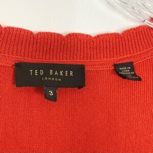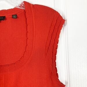 NWOT TED BAKER Top 3/M Red Knit Scallop-Trim Logo Sleeveless Stretchy”Stacey”