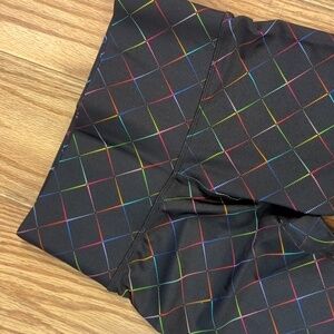 NWOT TEREZ foil print black and rainbow cropped leggings, women's XS
