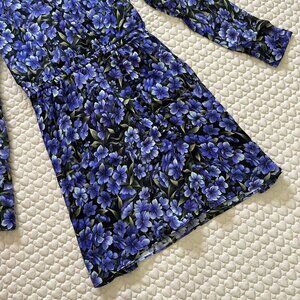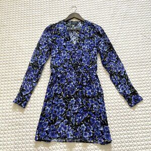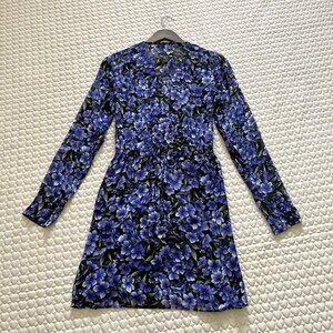 NWOT THE KOOPLES Floral Silk-georgette Purple long sleeves Mini Dress Size 2