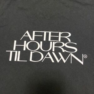Show off your love for The Weeknd with this NWOT After Hours Til Dawn Tour T-Shirt. This black cotton t-shirt features a double-sided design with the tour logo on one side and a concert graphic on the other. The long sleeve shirt is perfect for fans of the Canadian singer and producer who want to show their support for his music.