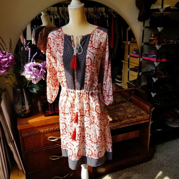 Perfect dress for a day around town or in the office. Drawstring waist allows for stretch and gives a flattering waistline. Will look great with booties for the fall.