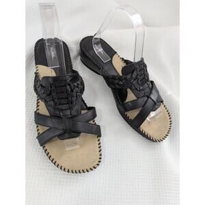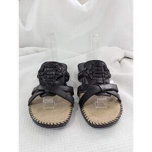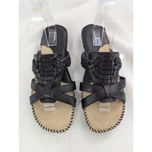 NWOT! THOM McAN! BLACK LEATHER WOVEN FRONT, MULTI & BRAIDED STRAP SANDALS!SZ 10W