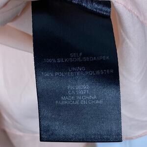Silk Peachy,Soft muted coloring.Sleeveless.Lined.Knee-Leignth. Drop waist. Lightweight & breathable. Flowing airy fabric. Novelty print. Slim racerback straps.Plain weave silk. Slips on over head. V-Neckline. Brand sold at Modsense, Nordstrom, & The RealReal.