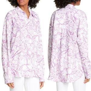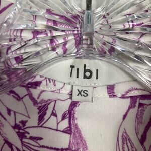 NWOT TIBI Shirt Blouse Tunic XS Purple Floral Button-Up Long-Slv”Isa-Toile-Crepe