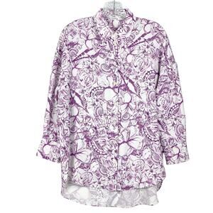 Floral.Purple/Violet-White.Button-Up.Long Sleeve,