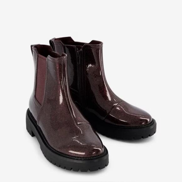 NWOT TOMS Bennet Purple Glitter Chelsea Ankle Boots Big Girls Sz 1