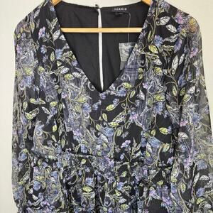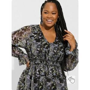 NWOT TORRID Mini Lurex Chiffon Sheer Tiered Dress Womens 00 (10) Dark Fairy