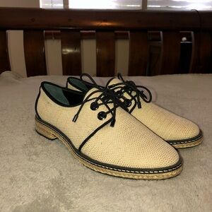 NWOT TORY BURCH Fawn Canvas Espadrille Leather Lace Oxford Shoes Sz 6.5.