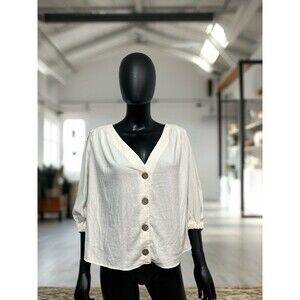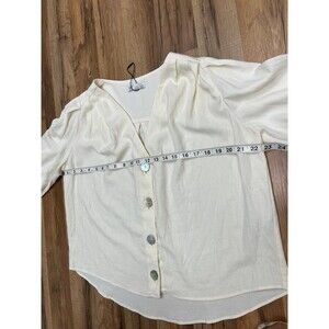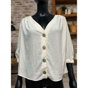 NWOT TRF ZARA Blouse Sz XSmall Linen Blend Puff Sleeve Iridescent Shell Buttons
