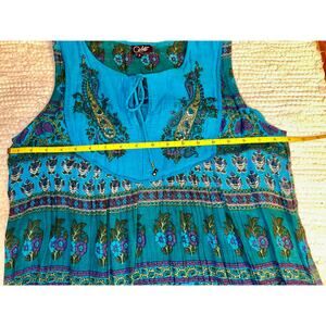 NWOT TURQUOISE SLEEVELESS BLOCK PRINT HIPPIE BOHO MAXI DRESS COTTON GAUZE