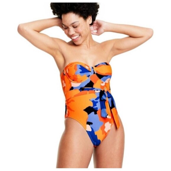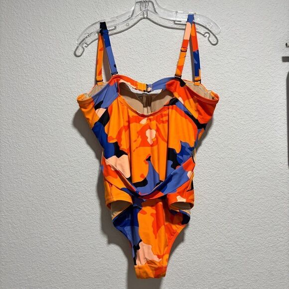 NWOT Tabitha Brown One Piece Swimsuit Multicolor 18W Floral Print Tie-Front