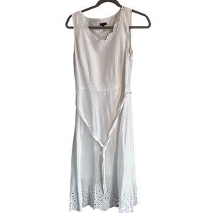 NWOT Talbots 100% Linen Eyelet Sleeveless Midi Dress in White size 10