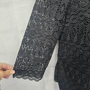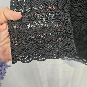 NWOT Talbots Black Crochet Lace Floral Sheer Blouse Fairy Boho Goth MP