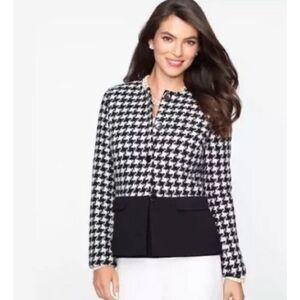 NWOT Talbots Black White Houndstooth Blazer Jacket colorblock WoolBlend sz 14