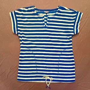 NWOT Talbots Blue/White Striped Short Sleeve Terrycloth Tee Size Small