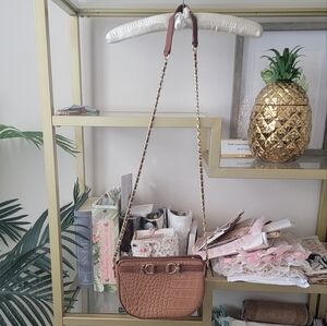 NWOT Talbots Brown Leather Crocodile Crossbody Bag/ Purse