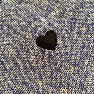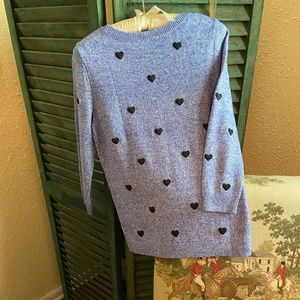 The cutest NWOT pullover with puffy, embroidered black hearts all over. Pretty marled knit in medium/cadet blue and white. Slightly scooped neck. 3/4 sleeves. 25” long. Hits at hip on my 5’5” frame. 80% cotton and perfect for your warmer weather wardrobe. Never worn. Perfect condition.