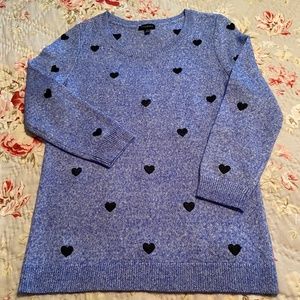 NWOT Talbots Cotton Sweater, XS, Marled Blue/White, Embroidered Hearts