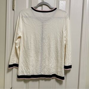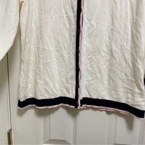 NWOT Talbots Cream, Navy Pink Trim Charming Cardigan L