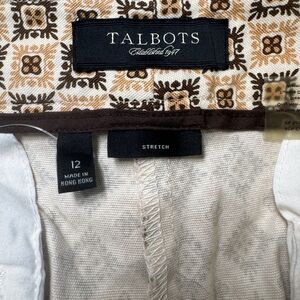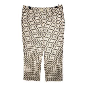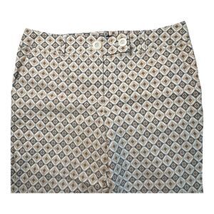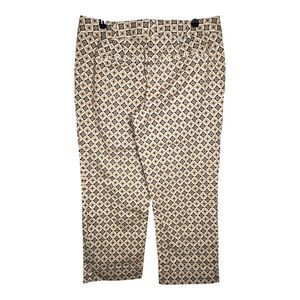 NWOT Talbots Crop Ankle Pants Womens 12 Brown Tan Cream Geometric Tile Stretch