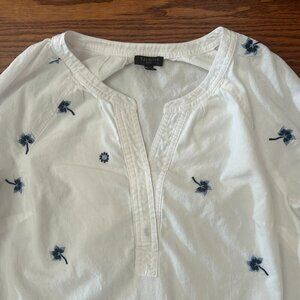 NWOT Talbots Embroidered Popover Tossed Ditsy Blue Floral Size Small Petite