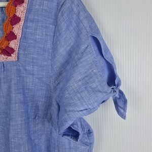 NWOT Talbots Linen Cotton Blend Crochet Trim Blue Chambray Like Size XLPetite