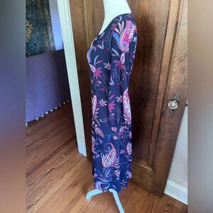 NWOT Talbots Navy and Pink Paisley Fit and Flare Dress Women Size 4 Peti…