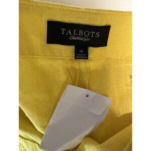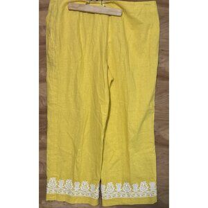 NWOT Talbots Pants Womens Sz 16 Yellow Linen Blend Cropped Embroidered