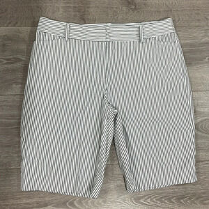 NWOT Talbots Perfect Short in size 8P. Excellent new condition. White with black stripes, two front and two back pockets, zipper, button and hook and bar front closure. Please see photos for approximate measurements and details. Item may show a difference in color based upon photography and perception. Photos are part of the description, as everyone’s level of condition may vary. From smoke free and pet free home. All packages are shipped the same or next business day.