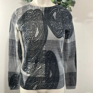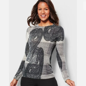 NWOT Talbots Petites Pure Cashmere Crewneck Sweater Gray Paisley P (XSP)