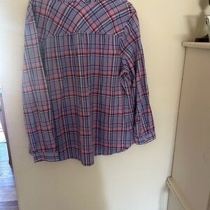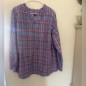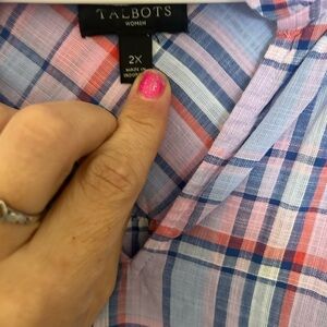 NWOT Talbots Plus Size 2Xp Pink Purple Plaid 100% Cotton Shirt Top Blouse Ruffle