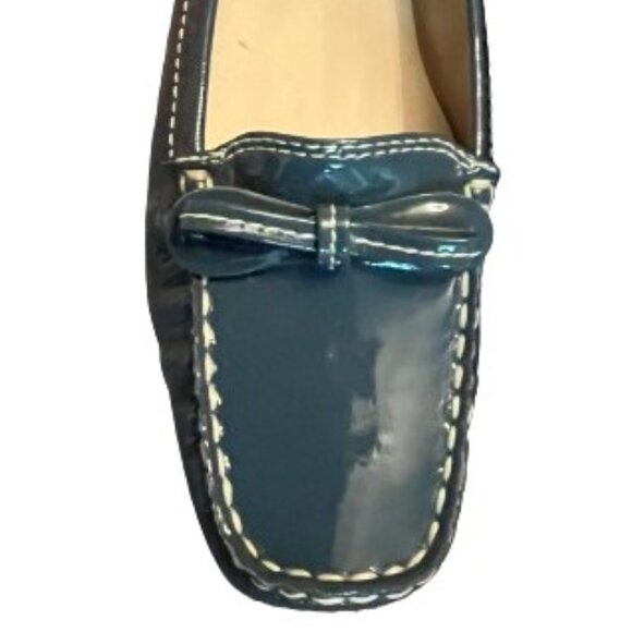 NWOT Talbots Posy Bow Tie Cobalt Blue Patent Leather Loafers Flats - Size 6