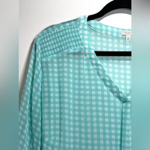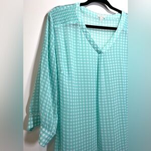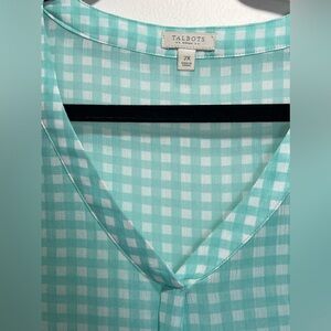 NWOT Talbots Sheer Aqua White Gingham Blouse Size 2X