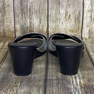 Step out in style and comfort with these chic Talbots silver metallic leather wedge slides. Perfect for a variety of occasions, their sleek design complements any outfit, while the cushioned footbeds and arch support offer all-day ease. The slip-on style ensures convenience, making them an essential addition to your footwear collection. Crafted with high-quality leather and featuring a comfortable 2.5-inch wedge heel, these slides are a blend of elegance and practicality. The open-toe model provides a breezy feel, ideal for warmer days. With a size 10 fit and a standard B width, these sandals are ready to become your go-to for sophisticated yet comfortable wear.