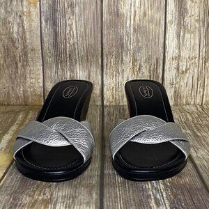 NWOT Talbots Silver Metallic Leather 2.5 in Wedge Heel Slides Women's Size 10