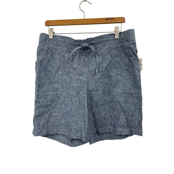 NWOT Talbots Simply Flattering Shorts Linen Cotton Blend Blue Chambray Size 12