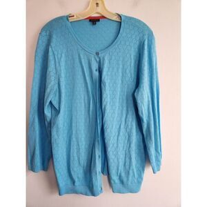 NWOT Talbots Women Blue Pointelle Cardigan Cotton Sweater size XL, in great condition