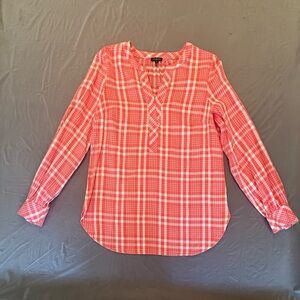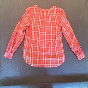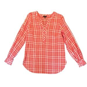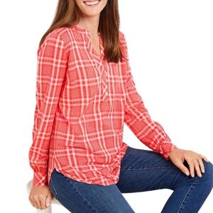 NWOT Talbots Women's Band Collar Red Plaid Tunic Blouse Size XS MSRP $79