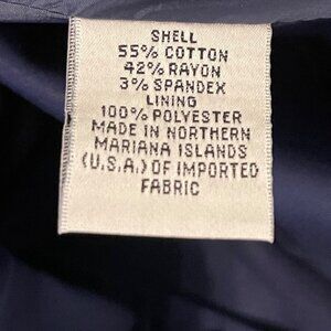 This Talbots blazer offers a sophisticated touch to any professional wardrobe. Its navy blue color and stretch fabric ensure both style and comfort. The blend of materials allows for ease of movement, making it a practical choice for the modern woman.