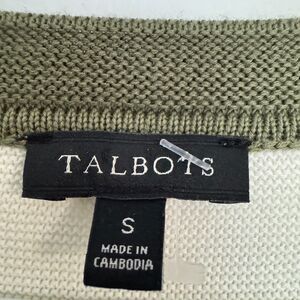 NWOT Talbots Women's SMALL Color Block Crewneck Sweater, Cream, NVB, Olive Green