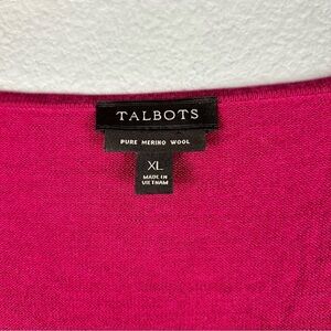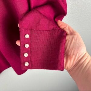NWOT Talbots Women's Size XL Marino Wool Maroon Pearl Button Sweater